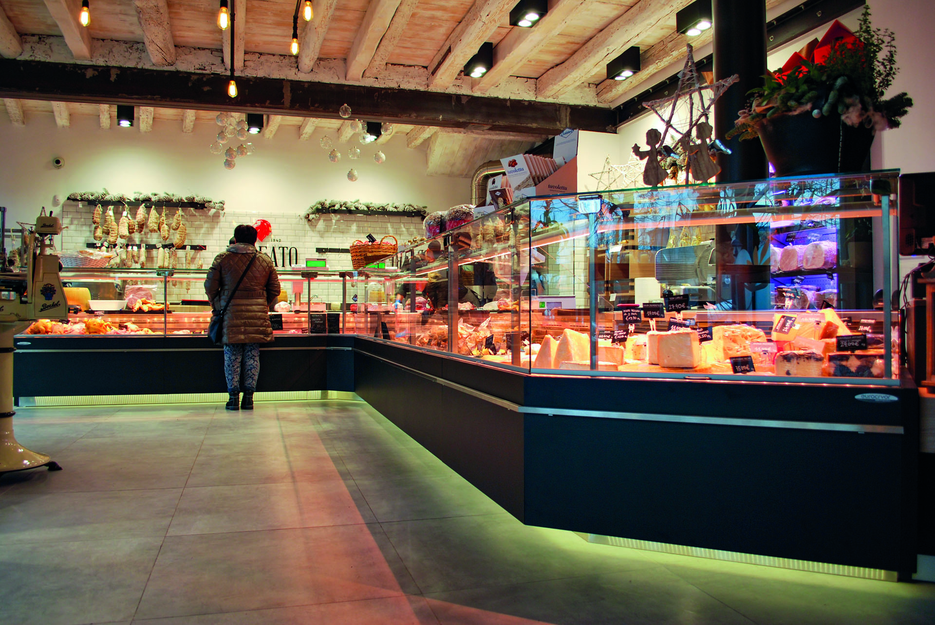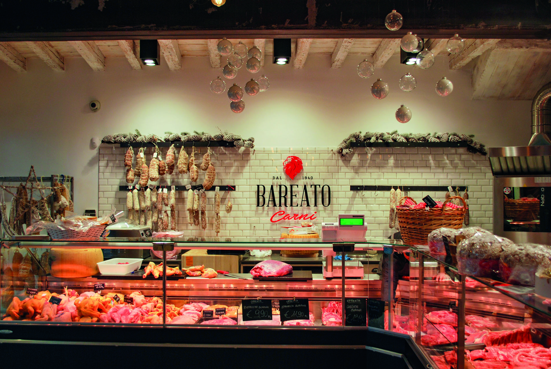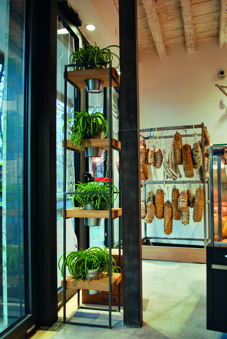 La macelleria è attiva dal 1940, mantenendo intatta la tradizionale qualità dei suoi prodotti. La freschezza e l'eccellenza delle carni si accompagna a dei prezzi offerti per essere accessibili a tutti. In questo negozio abbiamo studiato un arredo moderno, con contaminazioni industrial, in cui il legno di rovere si alterna ad elementi metallici.