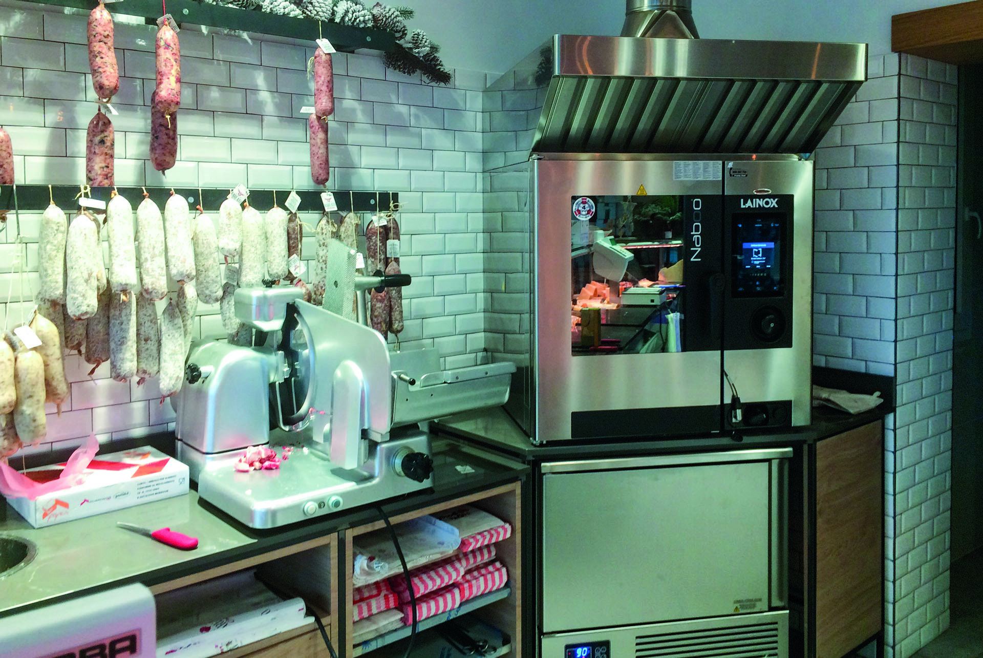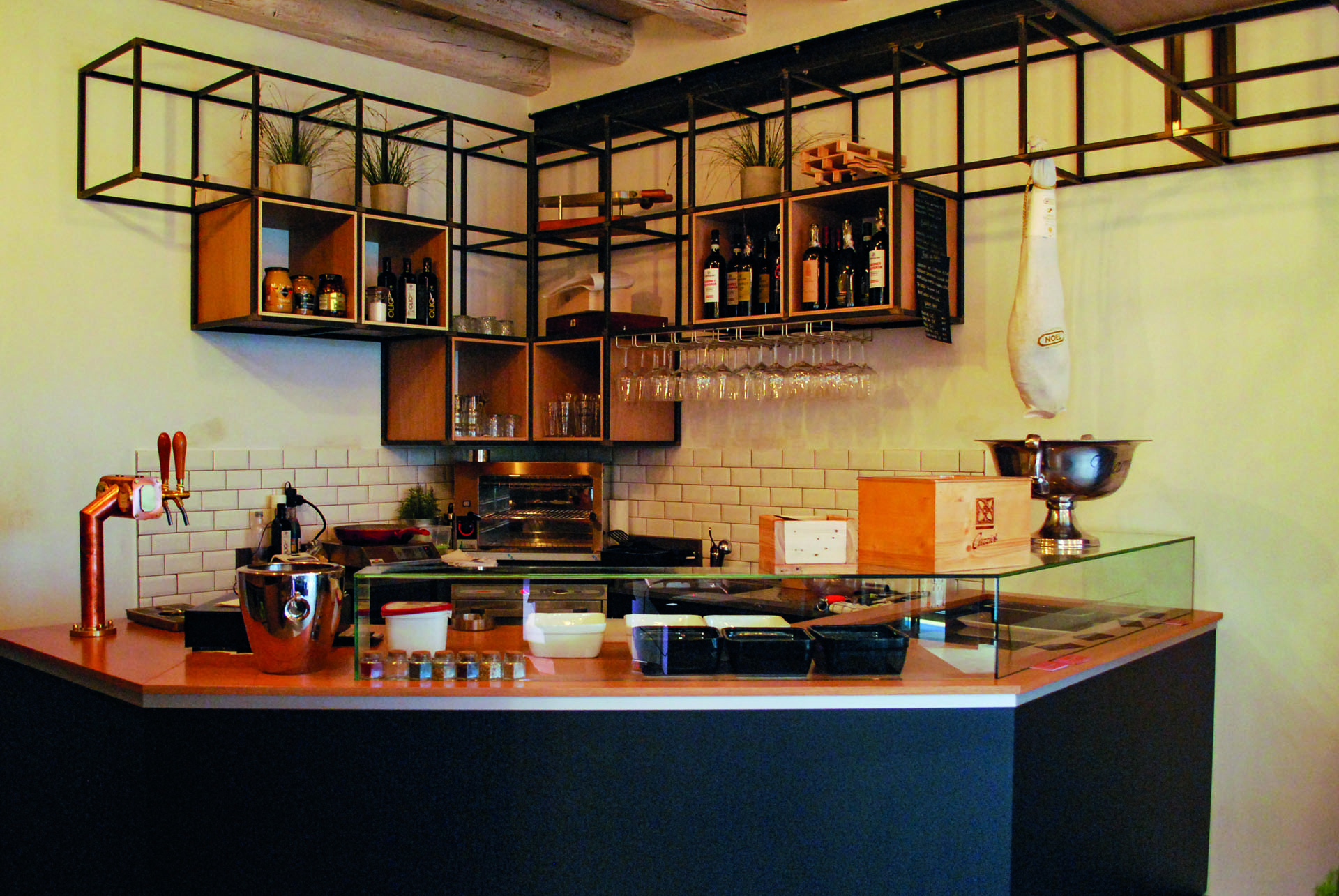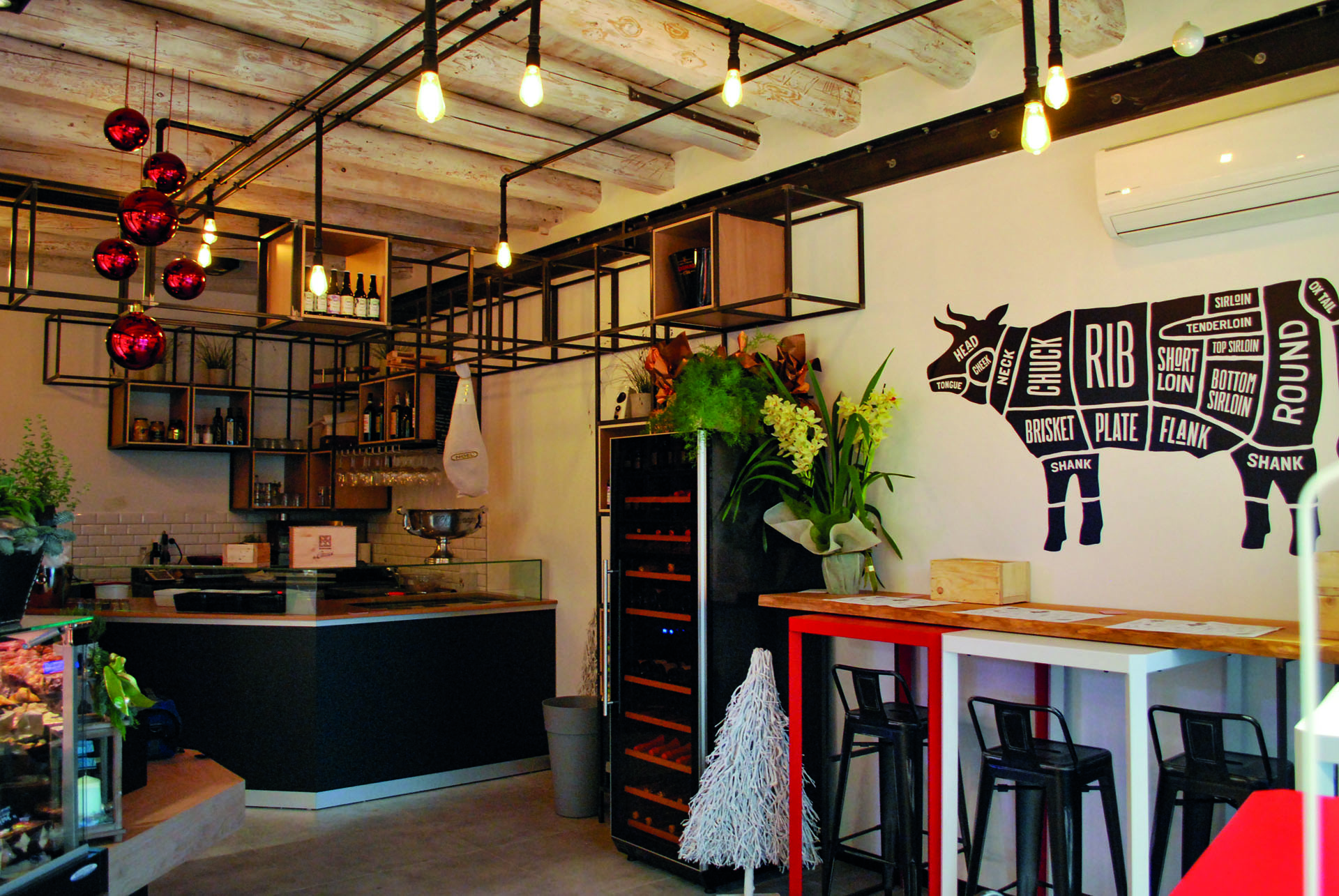 La macelleria è attiva dal 1940, mantenendo intatta la tradizionale qualità dei suoi prodotti. La freschezza e l'eccellenza delle carni si accompagna a dei prezzi offerti per essere accessibili a tutti. In questo negozio abbiamo studiato un arredo moderno, con contaminazioni industrial, in cui il legno di rovere si alterna ad elementi metallici.
