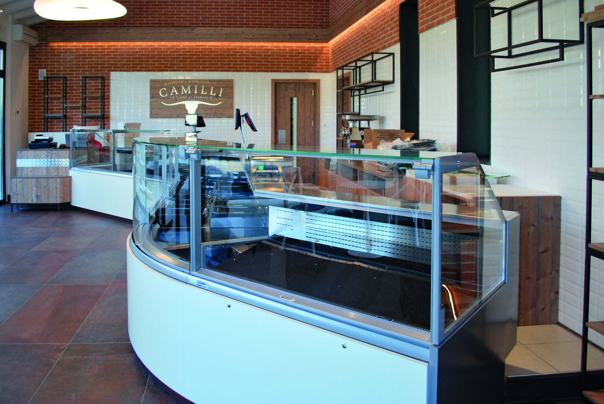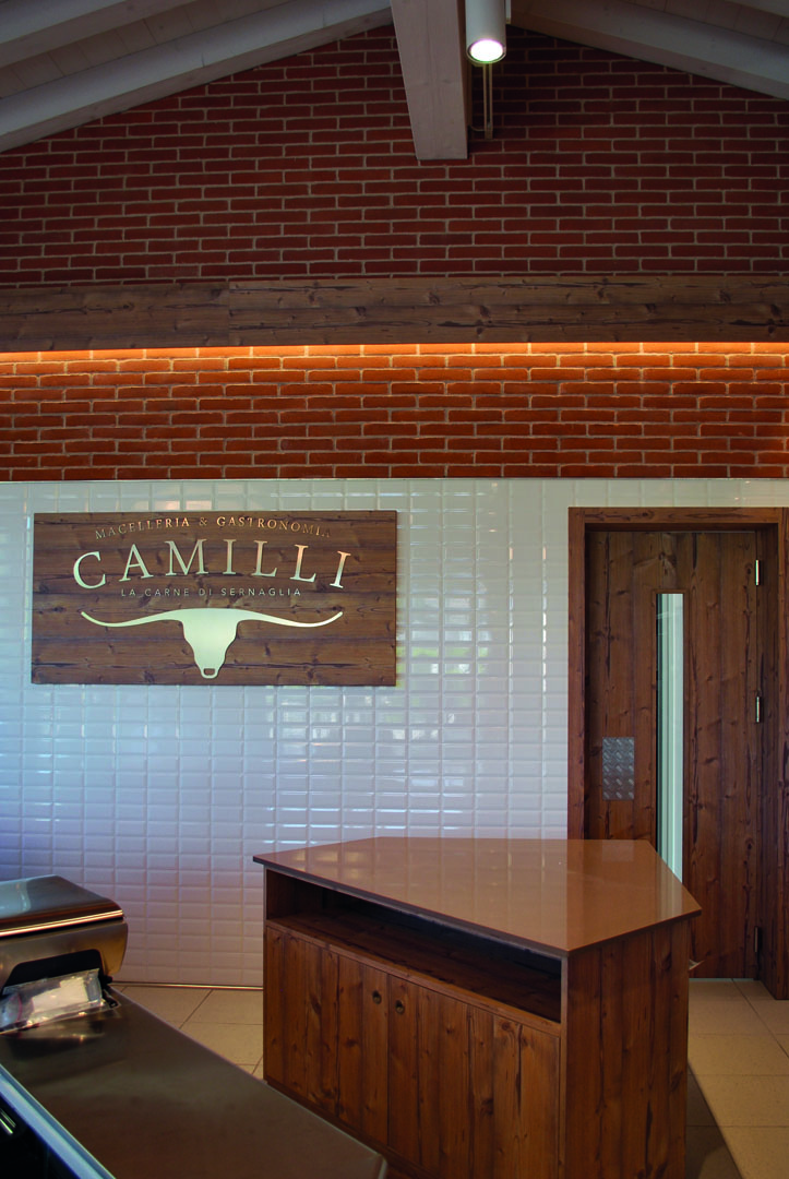 La macellerie e gastronomia Camilli si trova a Sernaglia della Battaglia (TV) e offre carni di altissima qualità, oltre a prodotti gastronomici. Il progetto ha previsto l’inserimento di legno d'abete invecchiato e di ferro verniciato naturale per valorizzare un ambiente moderno e luminoso, reso importante dalle pietre rosse e dalle travi.