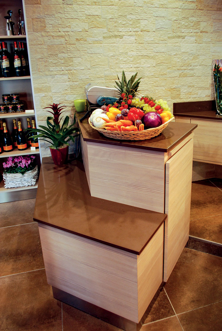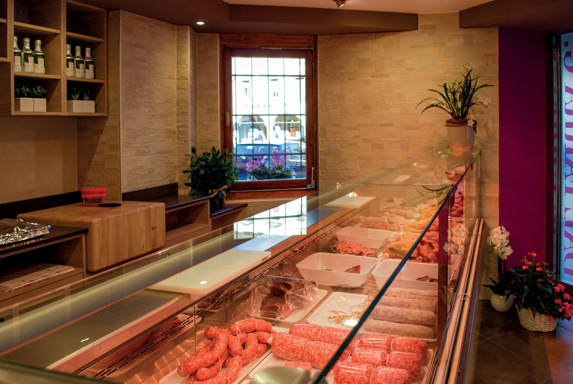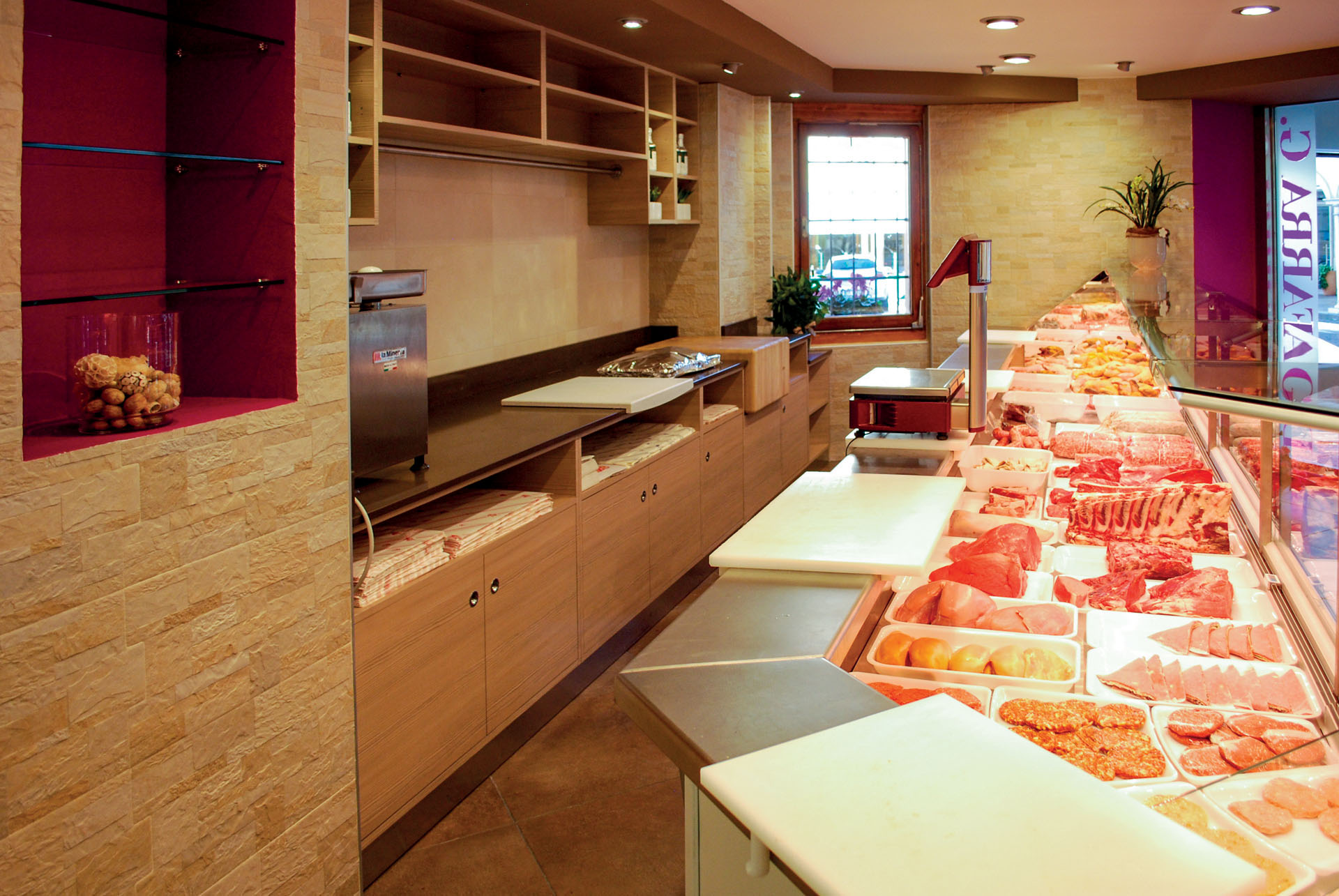 La macelleria si trova a Belluno e offre carni di prima qualità e piatti di gastronomia della tradizione locale. L'allestimento dell'arredo è stato realizzato per garantire pulizia e funzionalità nei piani di lavoro, ma al contempo per offrire ai clienti una sensazione di elegante sobrietà. Le scaffalature e gli espositori in legno offrono infine un ottimo piano per mettere in mostra la merce.