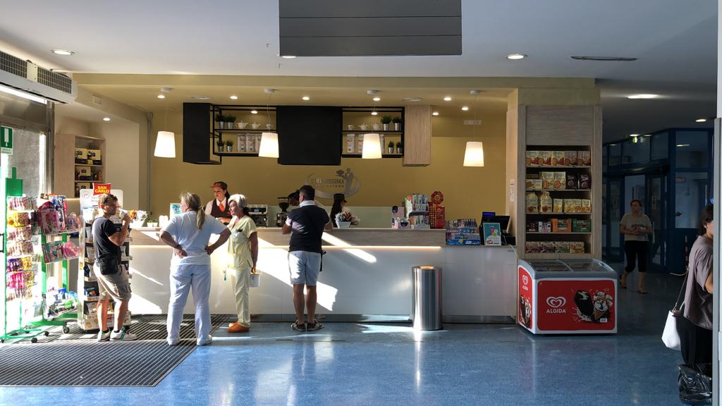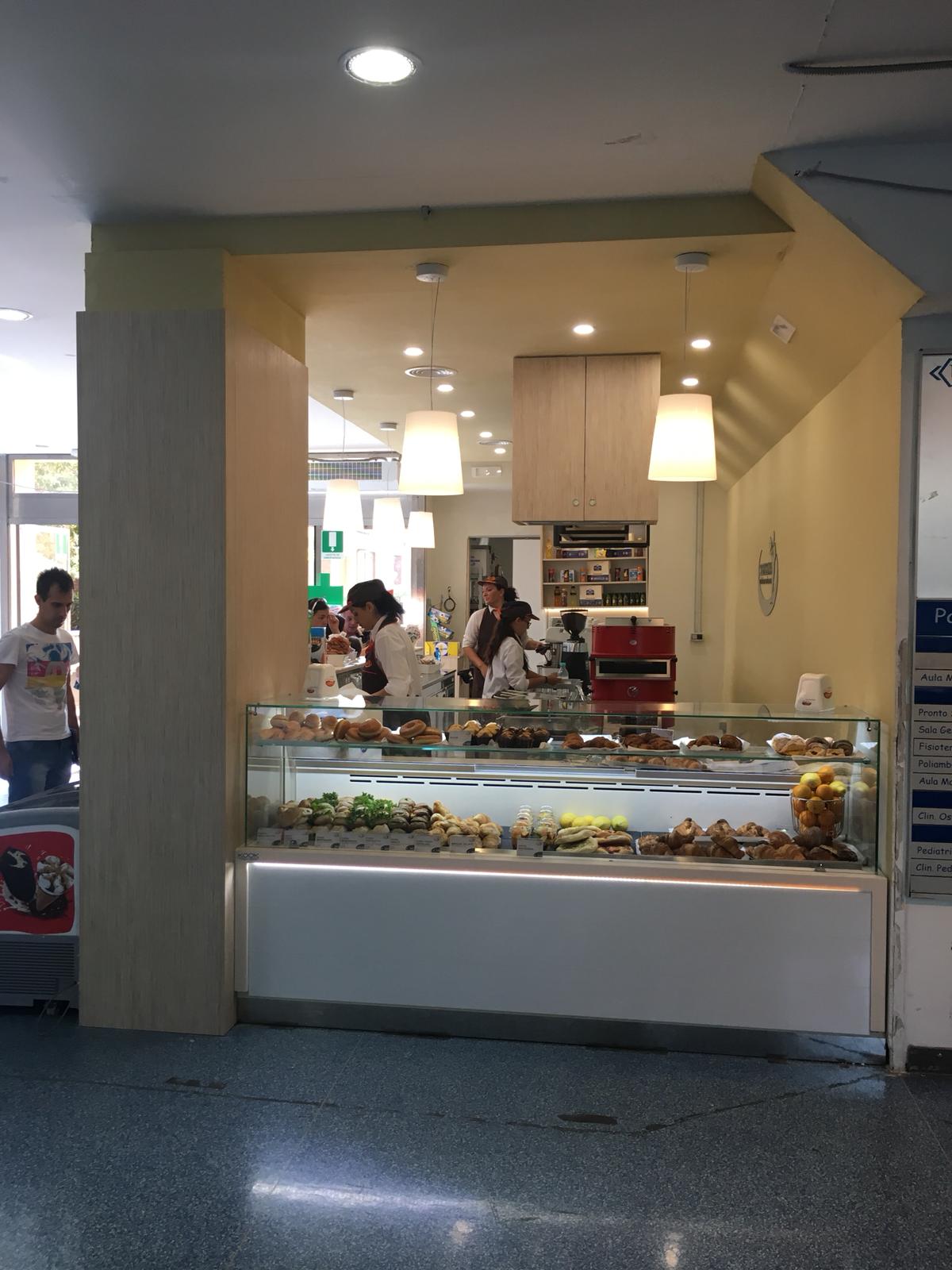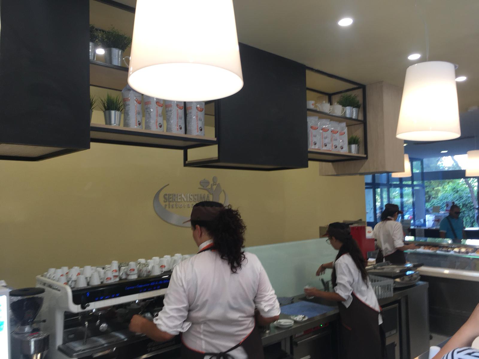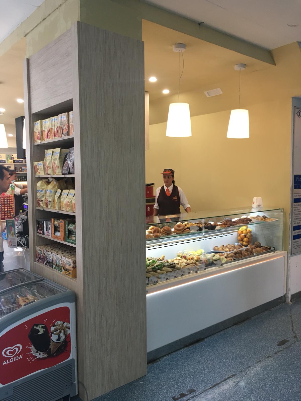 Bar realizzato con pannello finitura bianco lucido dogato e pannello finitura bambù, con struttura centrale sospesa in ferro per uso pensile e gruppo aspiratori zona fuochi.